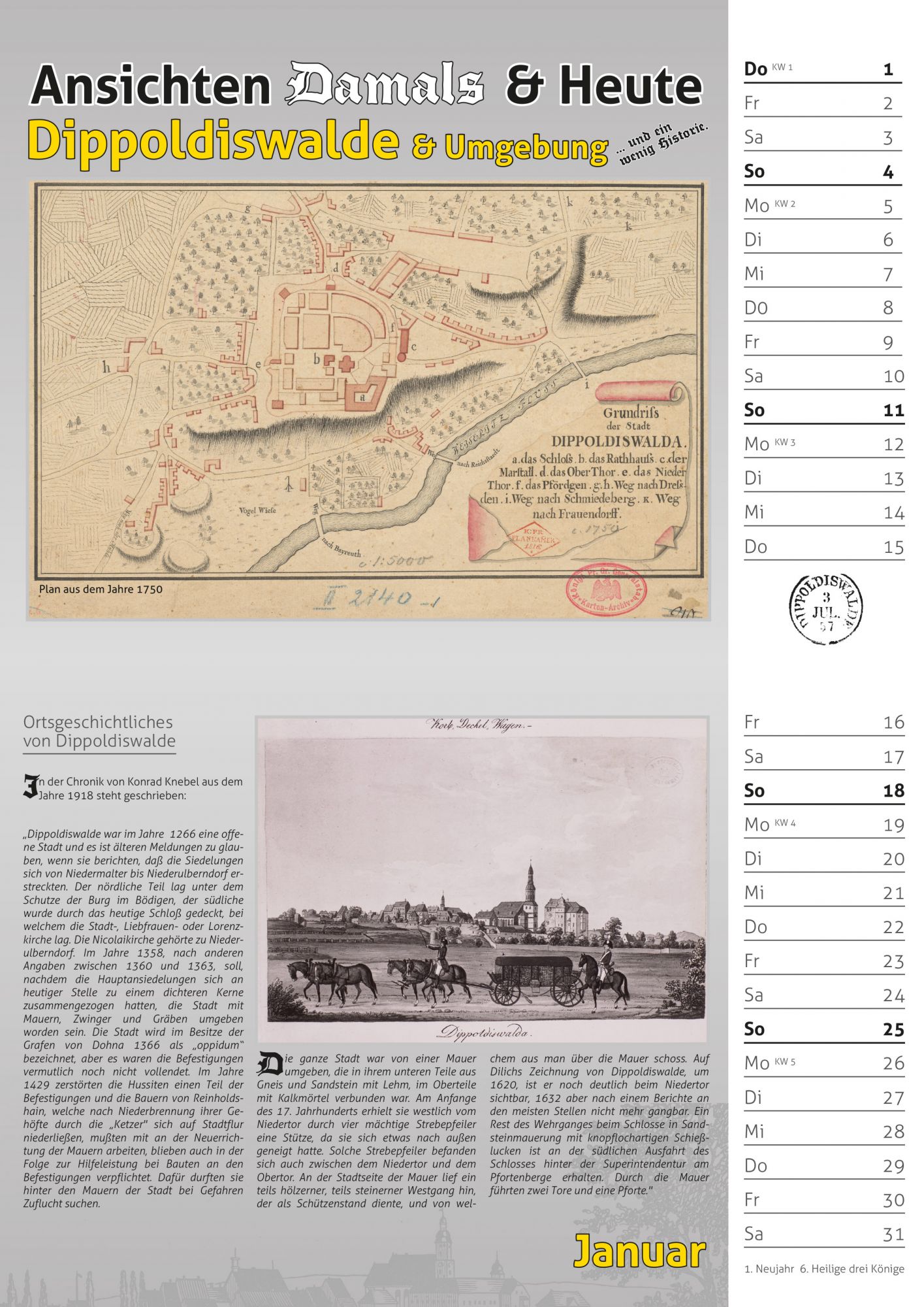 Bildkalender 2026 - alte Ansichtskarten aus Dippoldiswalde und Umgebung und die heutige Sicht.