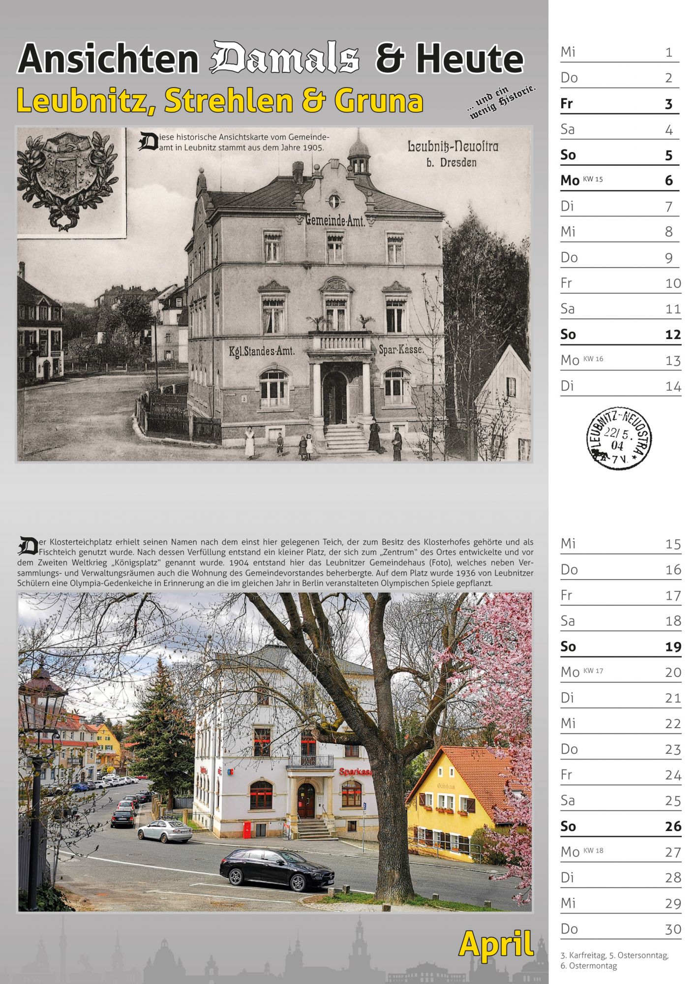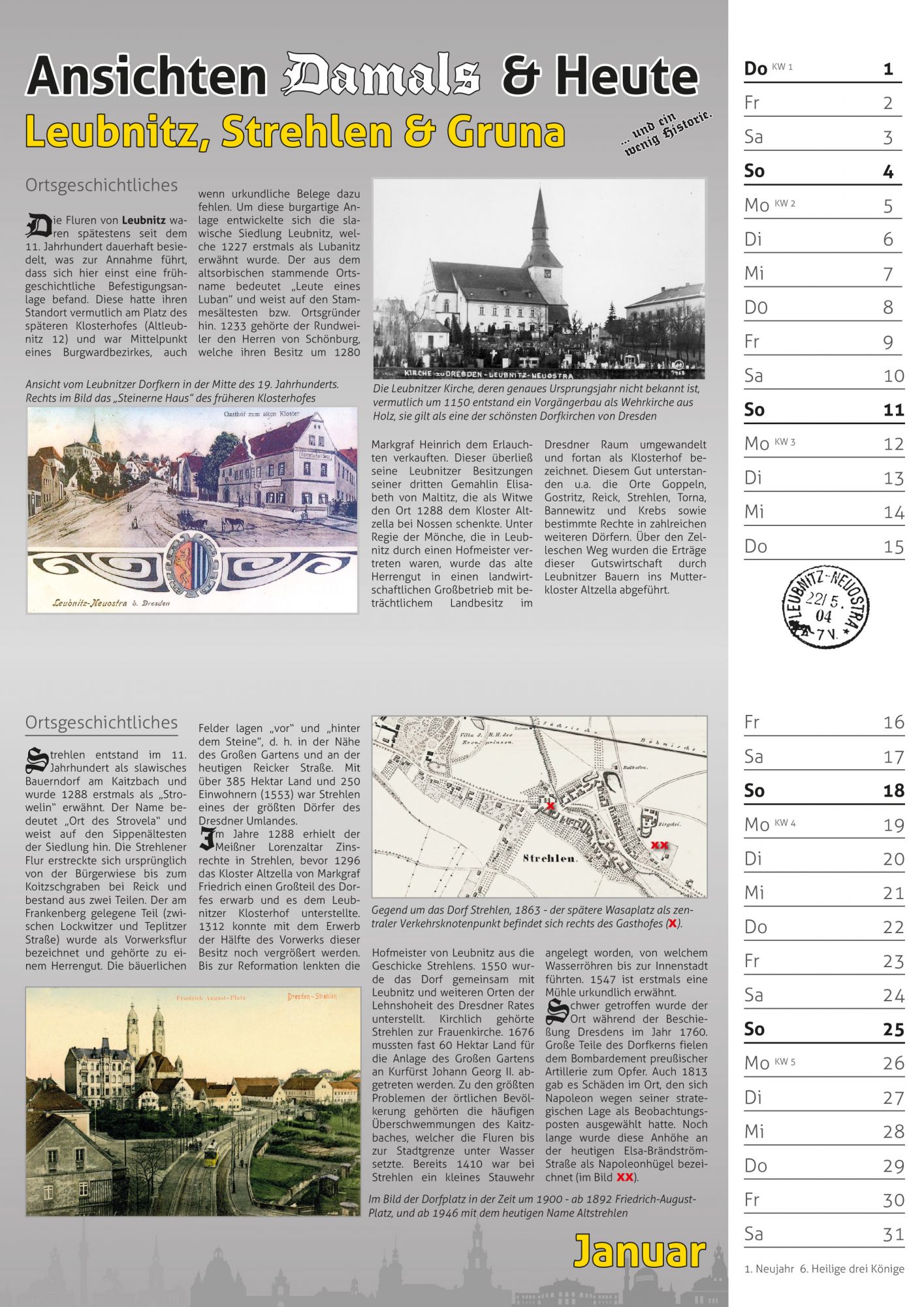 Bildkalender 2026 – historische Motive von Dresden Leubnitz, Strehlen & Gruna 2026 verglichen mit der heutigen Ansicht.