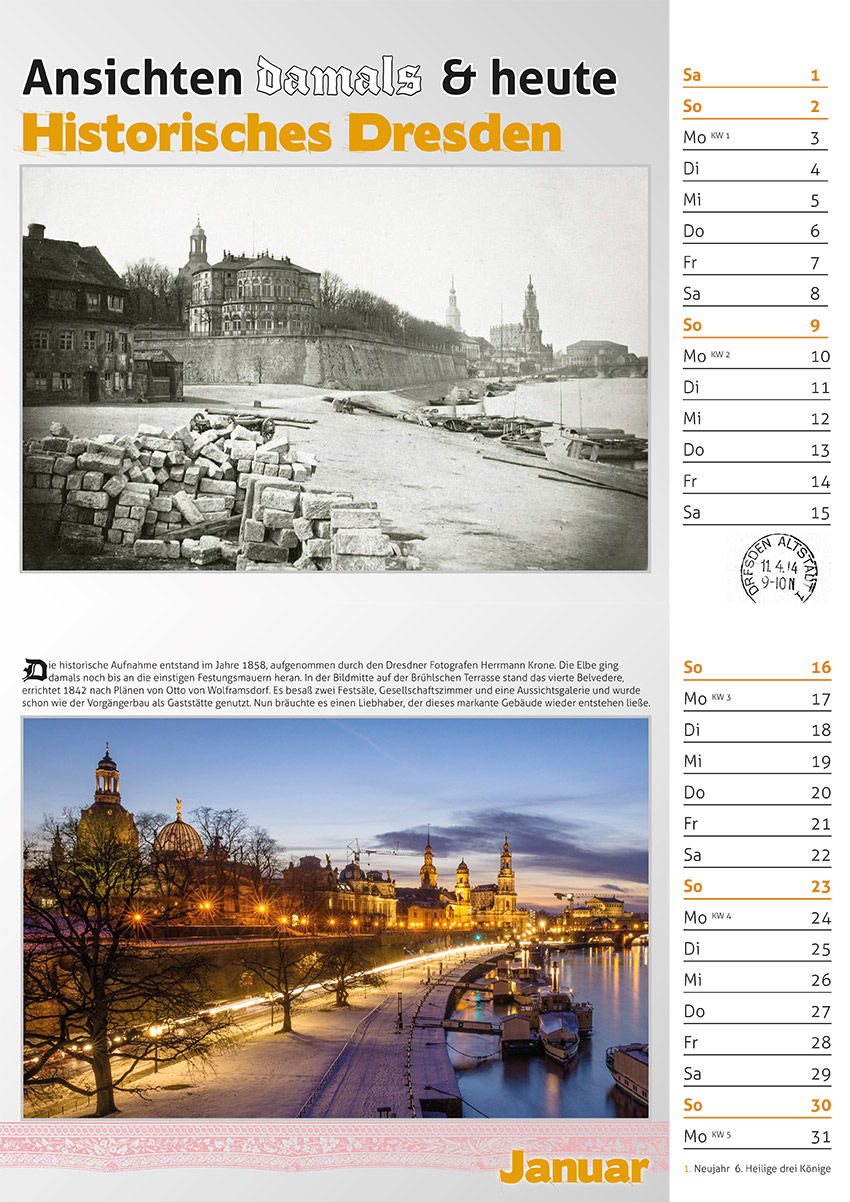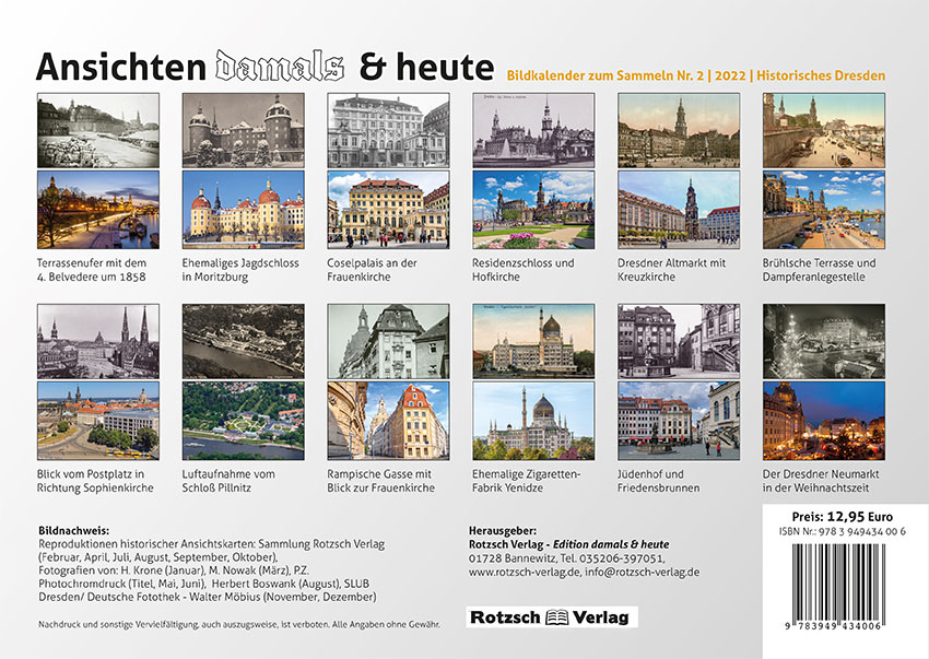 Bildkalender 2022 – Motive Historisches Dresden aus heutiger Sicht.