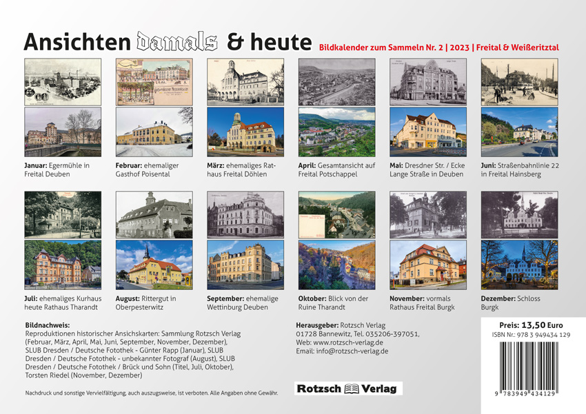 Bildkalender 2023 – Motive vom historischen Freital und Umgebung aus heutiger Sicht.