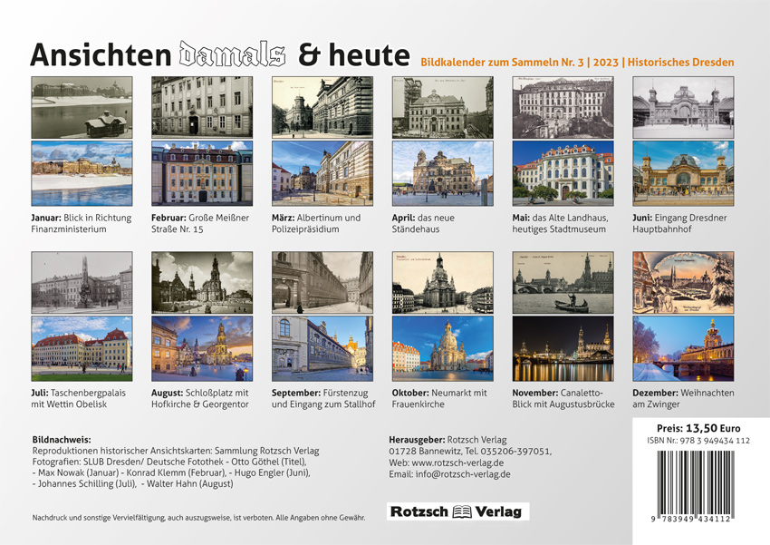 Bildkalender 2023 – Motive von der historischen Dresdner Innenstadt aus heutiger Sicht.