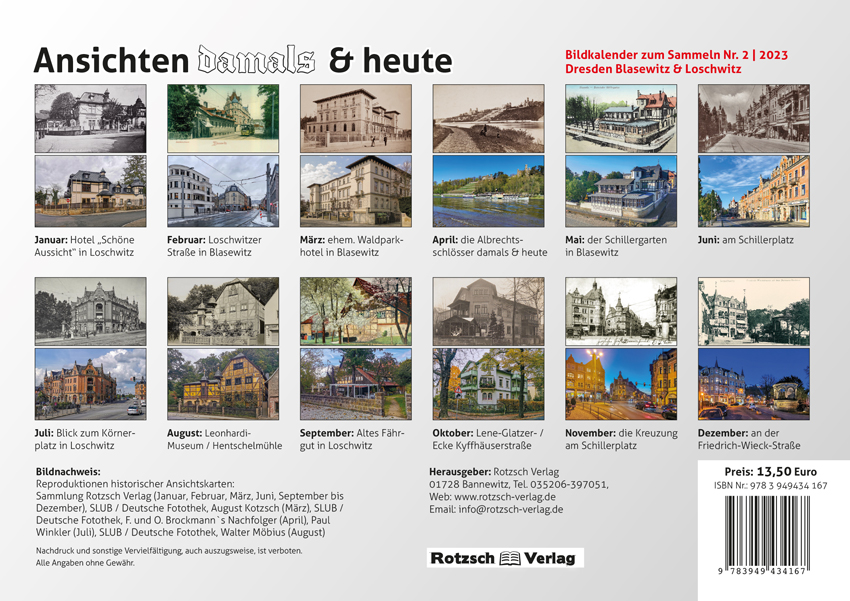 Bildkalender 2023 – historische Motive der Dresdner Stadtteile Blasewitz & Loschwitz und die heutige Sicht.