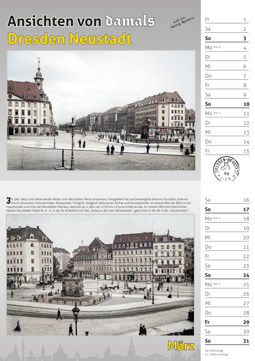 Bildkalender 2024 - alte Ansichtskarten aus der Dresdner Neustadt.