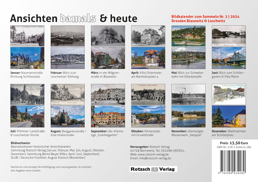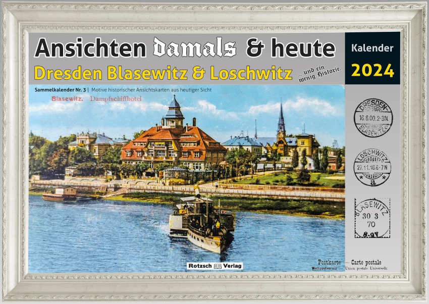 Bildkalender 2024 - alte Ansichtskarten Dresden Blasewitz und Loschwitz und die heutige Sicht.