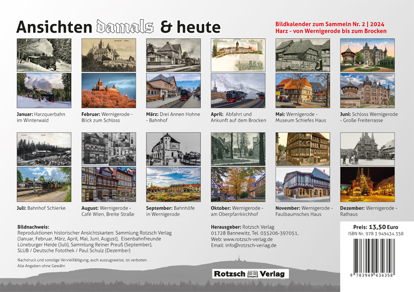 Bildkalender 2024 – historische Motive aus dem Harz aus heutiger Sicht.