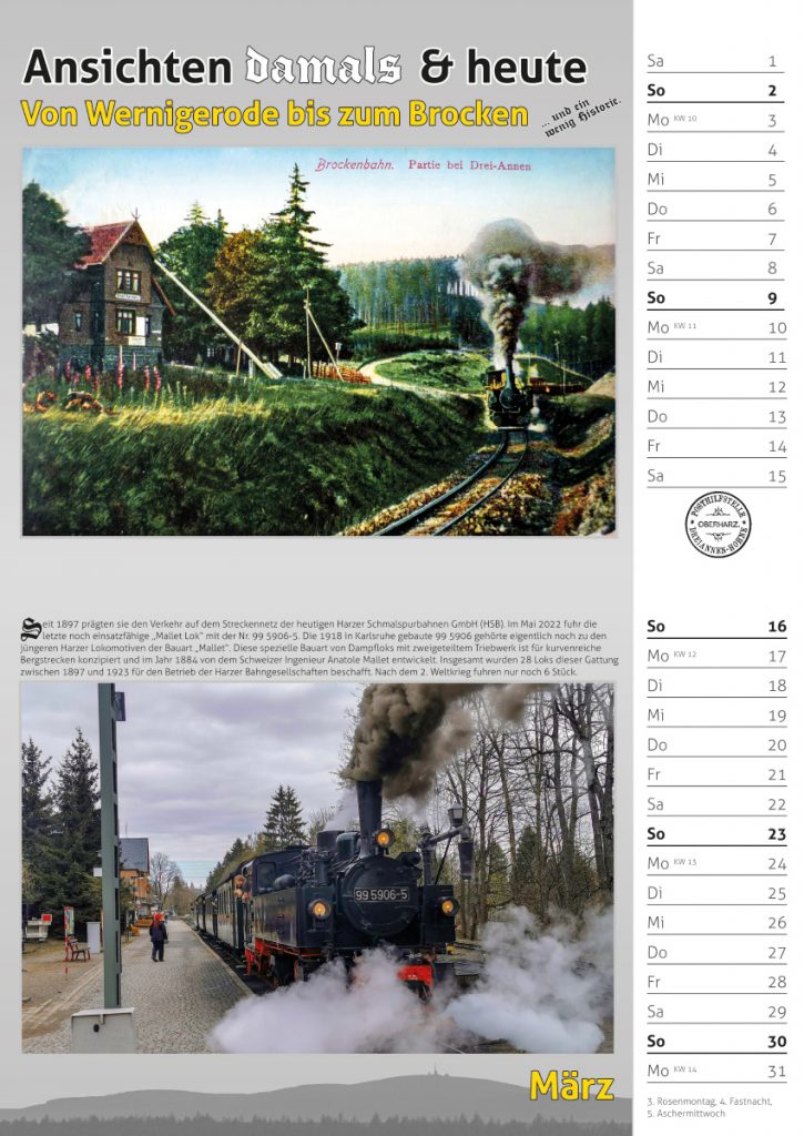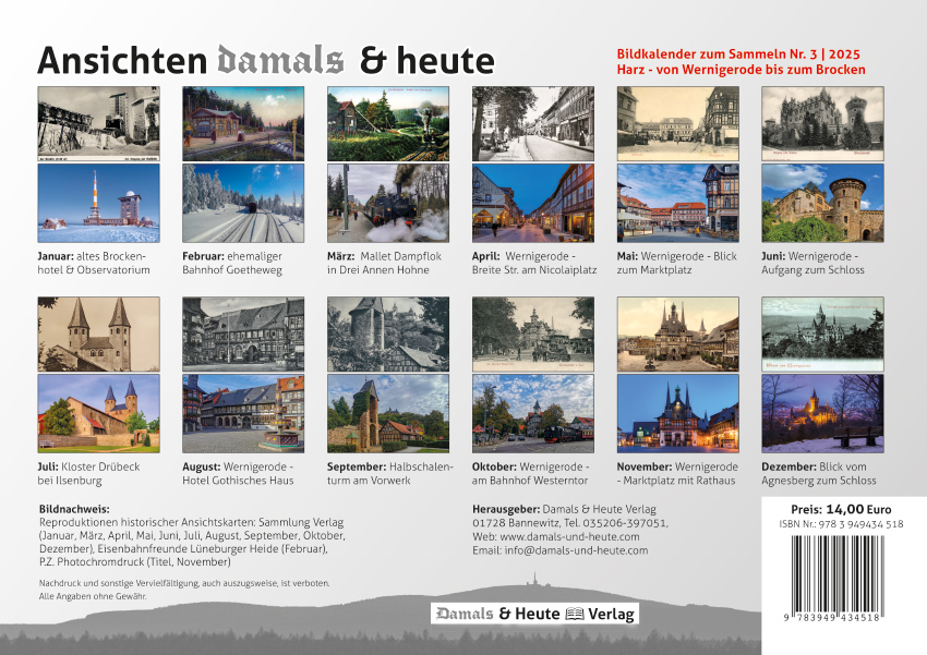 Bildkalender 2025 – historische Motive aus dem Harz aus heutiger Sicht.