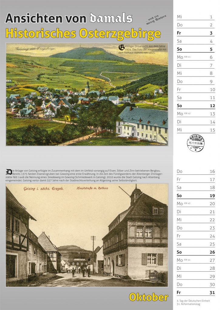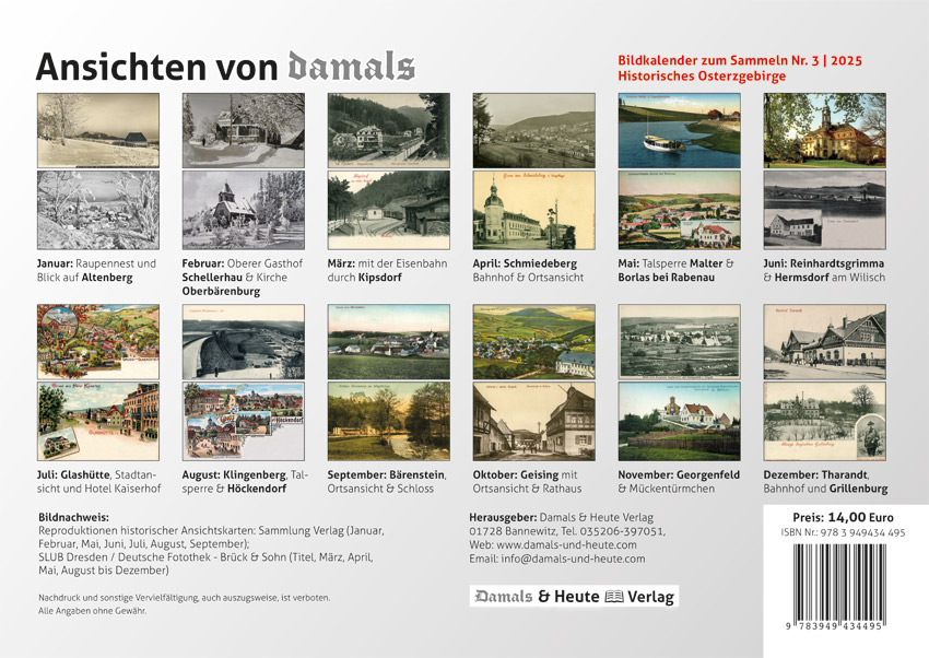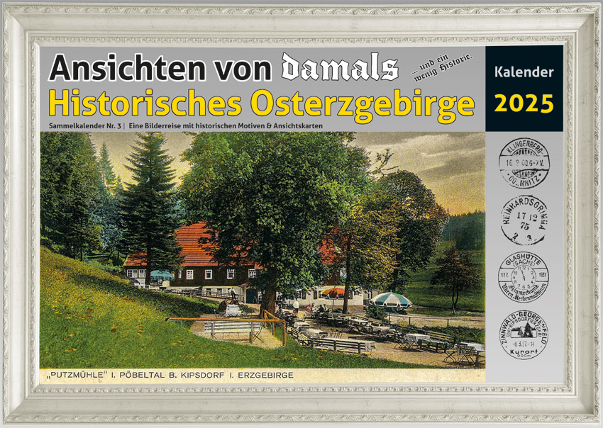 Bildkalender 2025 – historische Motive aus dem Osterzgebirge, von Altenberg über Tharandt bis Klingenberg und Zinnwald.