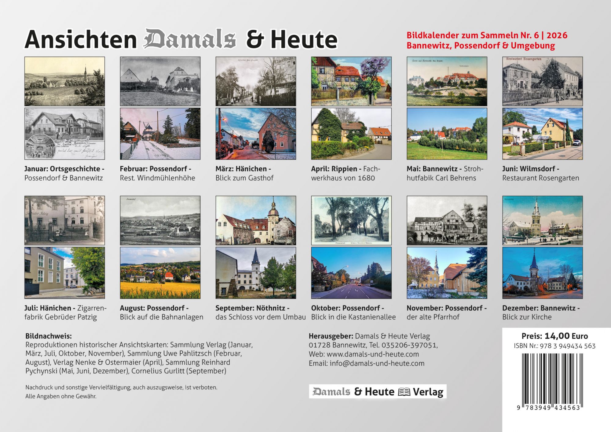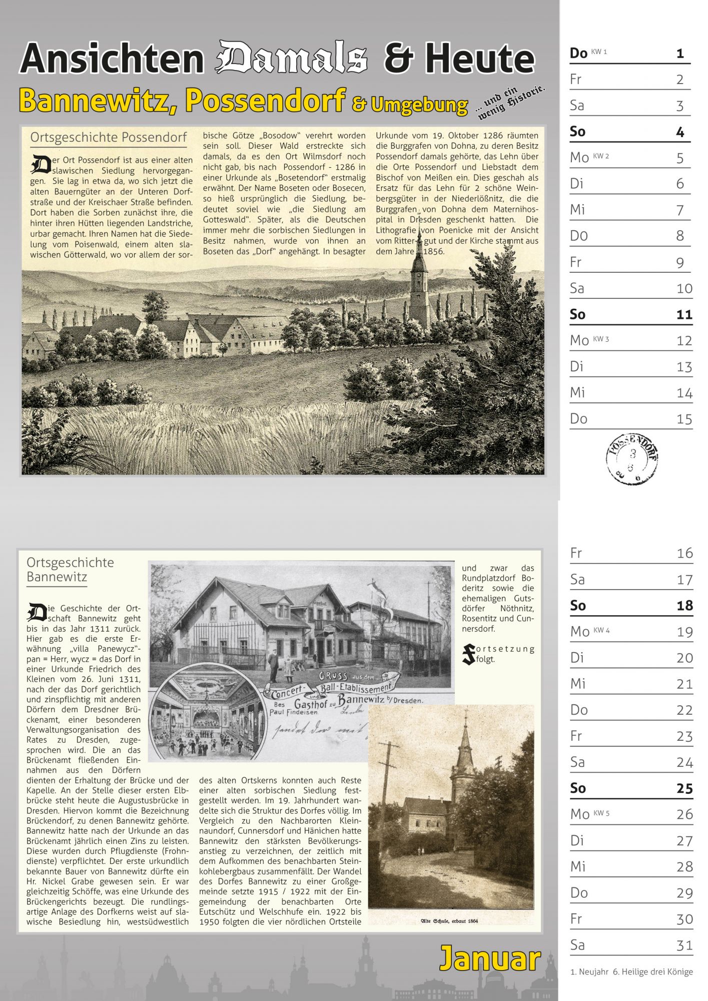 Bildkalender 2026 – historische Motive aus Bannewitz, Possendorf und Umgebung aus heutiger Sicht.