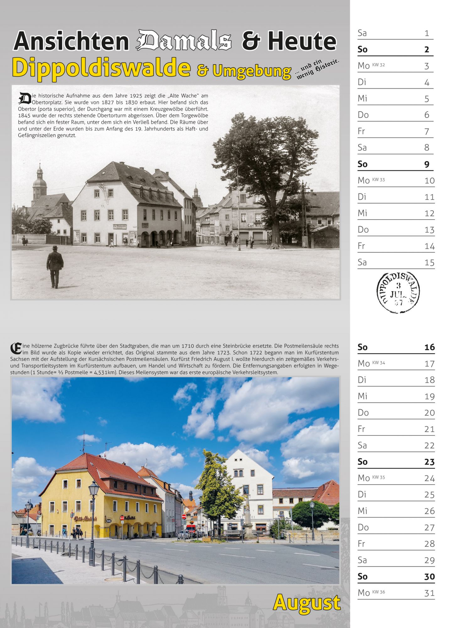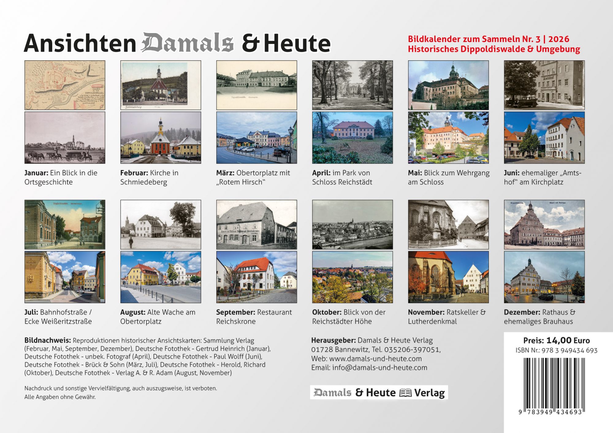 Bildkalender 2026 - alte Ansichtskarten aus Dippoldiswalde und Umgebung und die heutige Sicht.