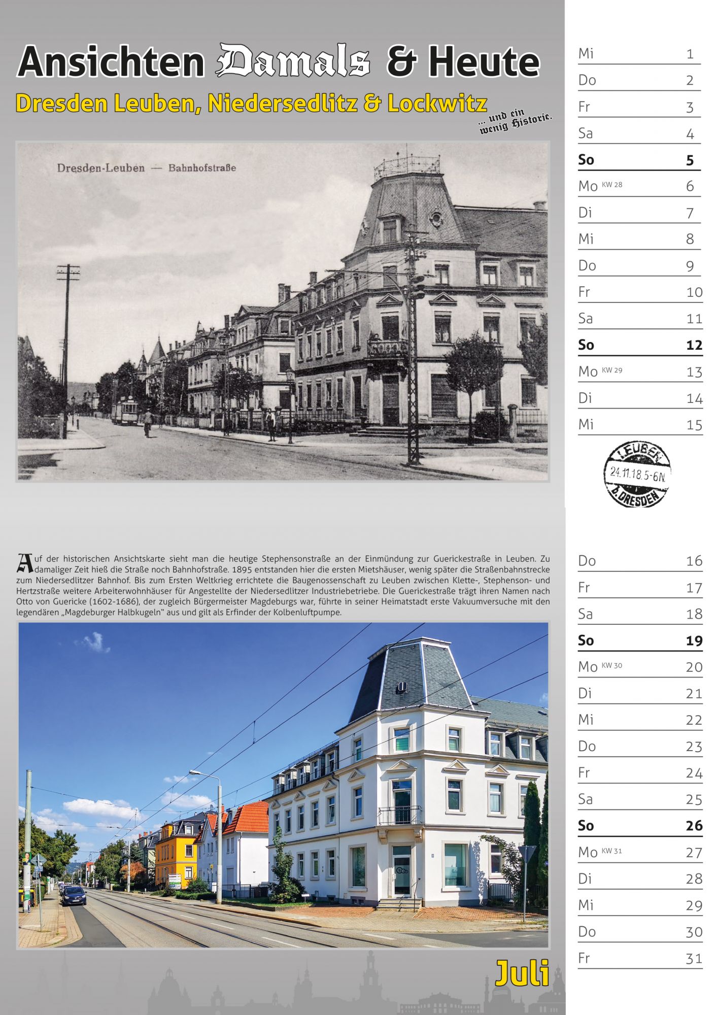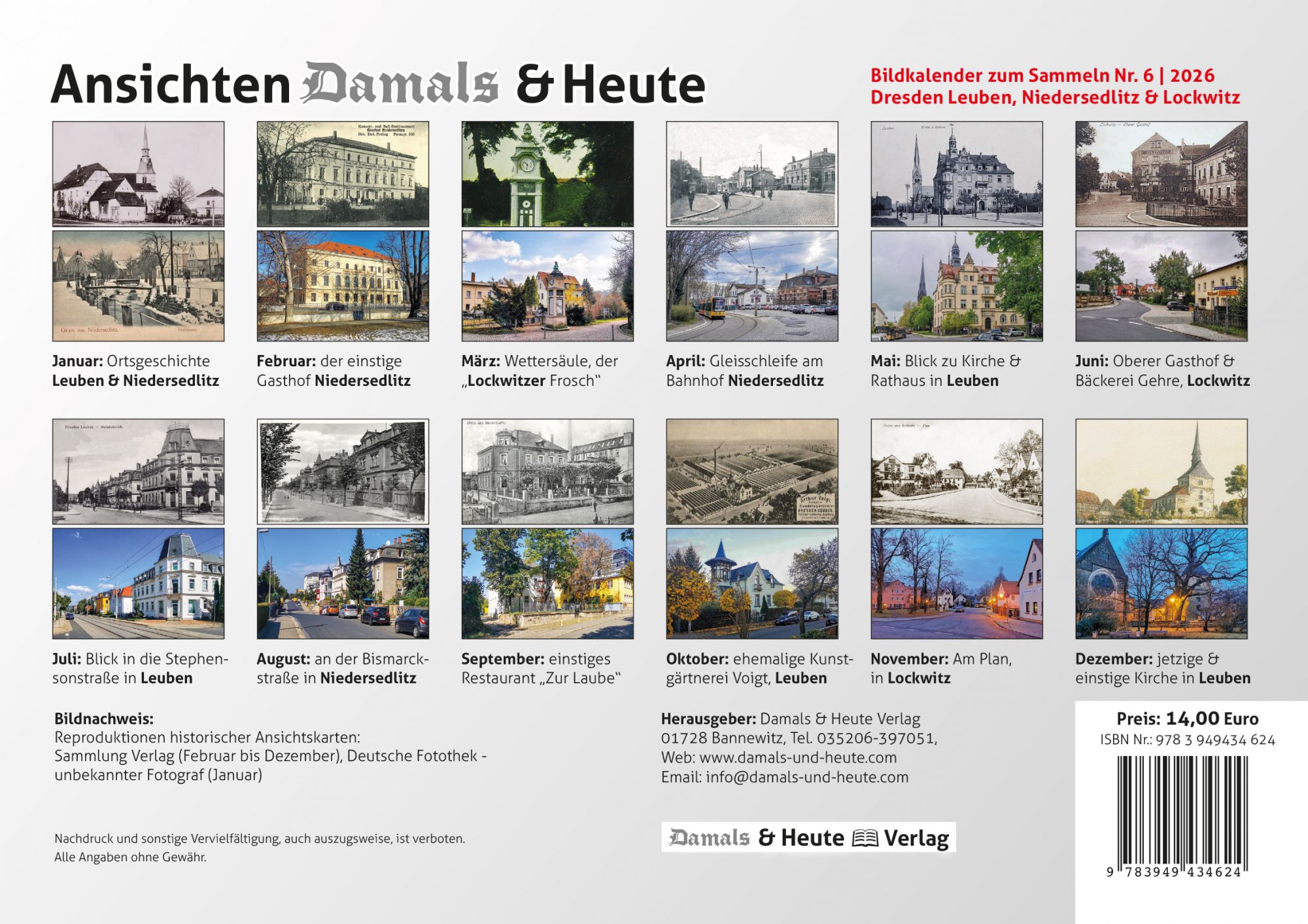Bildkalender 2026 – historische Motive von Dresden Leuben, Niedersedlitz & Lockwitz, verglichen mit der heutigen Ansicht.
