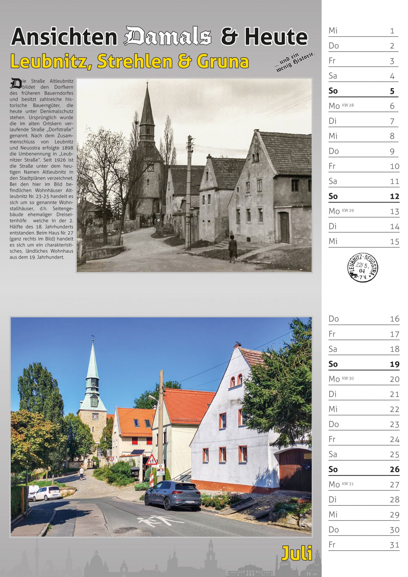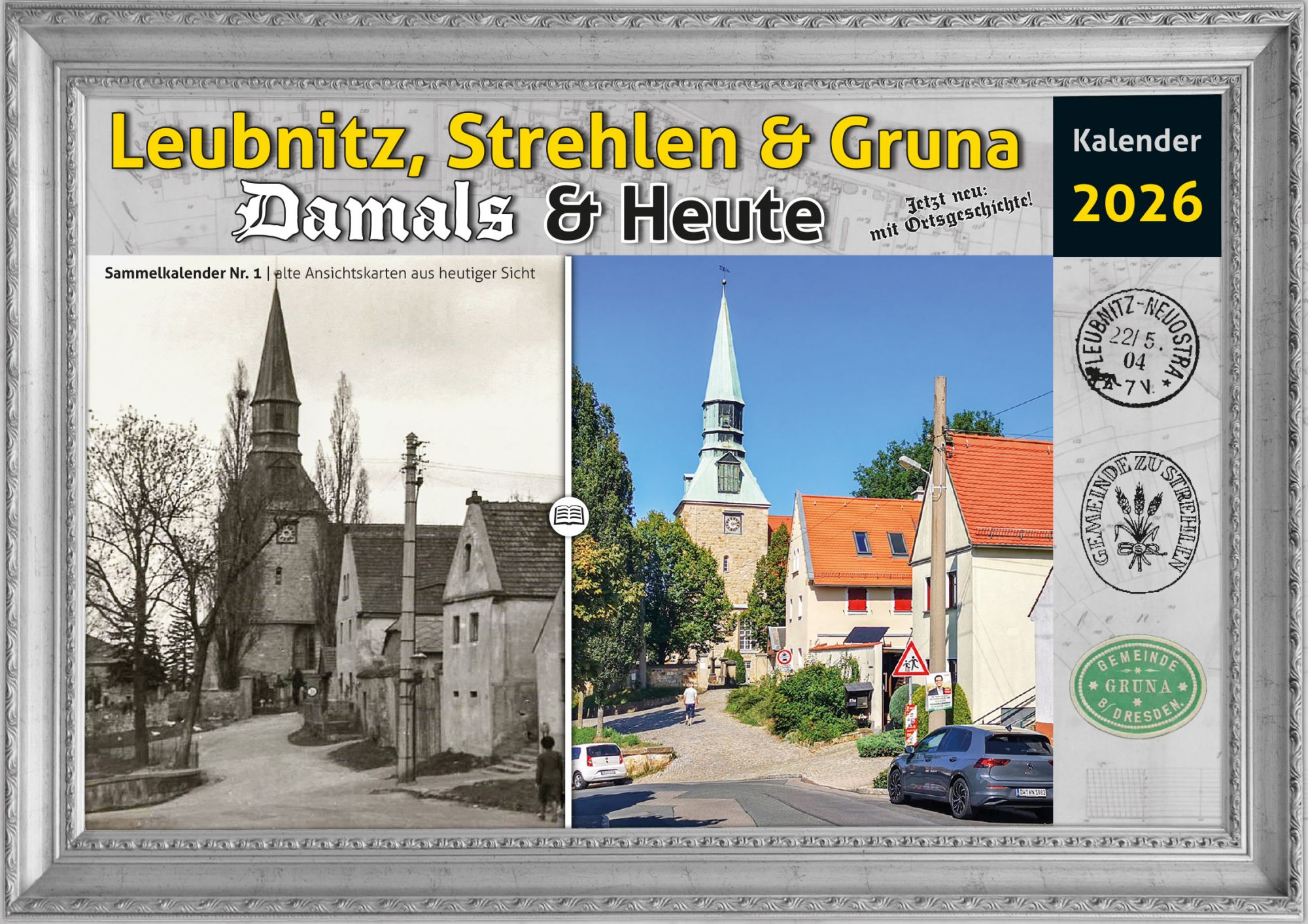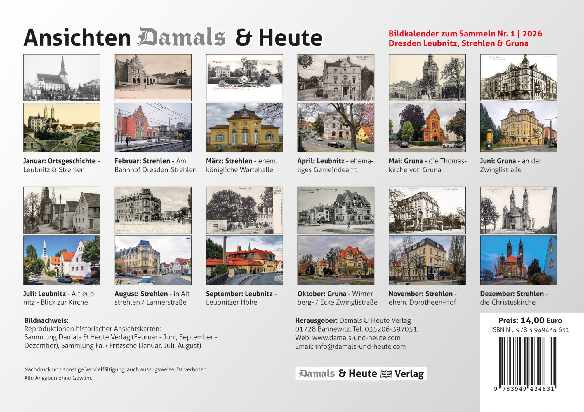 Bildkalender 2026 – historische Motive von Dresden Leubnitz, Strehlen & Gruna 2026 verglichen mit der heutigen Ansicht.