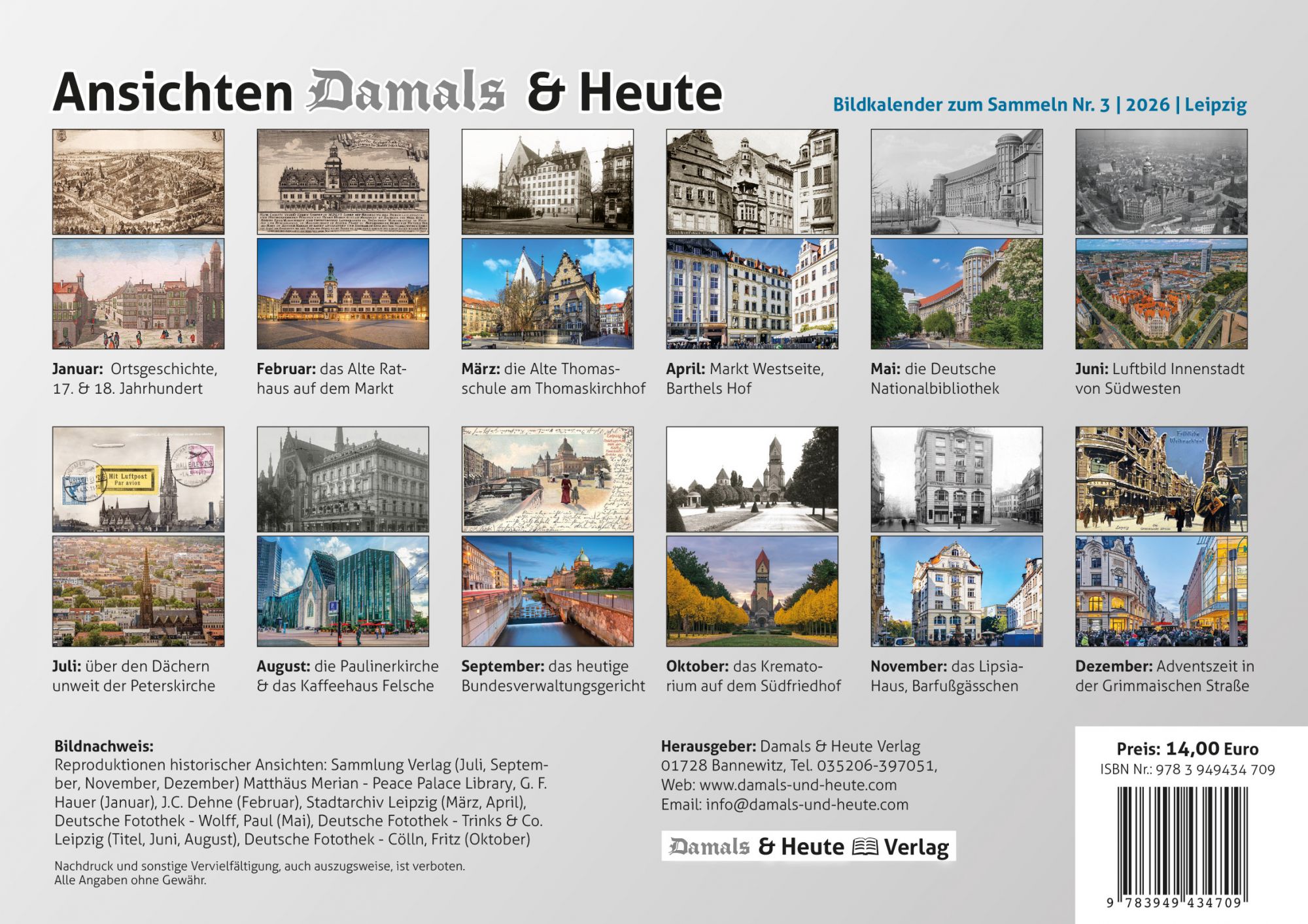 Bildkalender 2026 – Motive vom historischen Leipzig und die heutige Sicht.