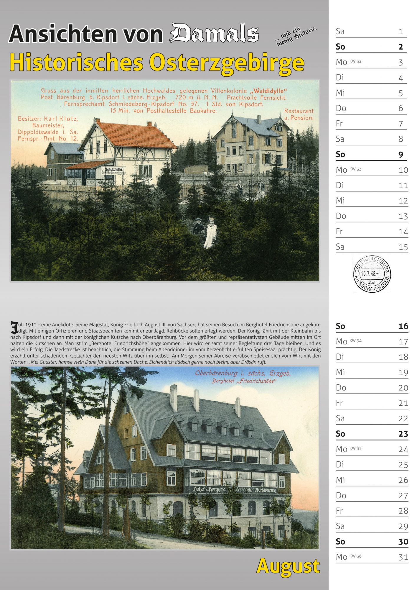 Bildkalender 2026 – historische Motive aus dem Osterzgebirge - eine historische Bilderreise.