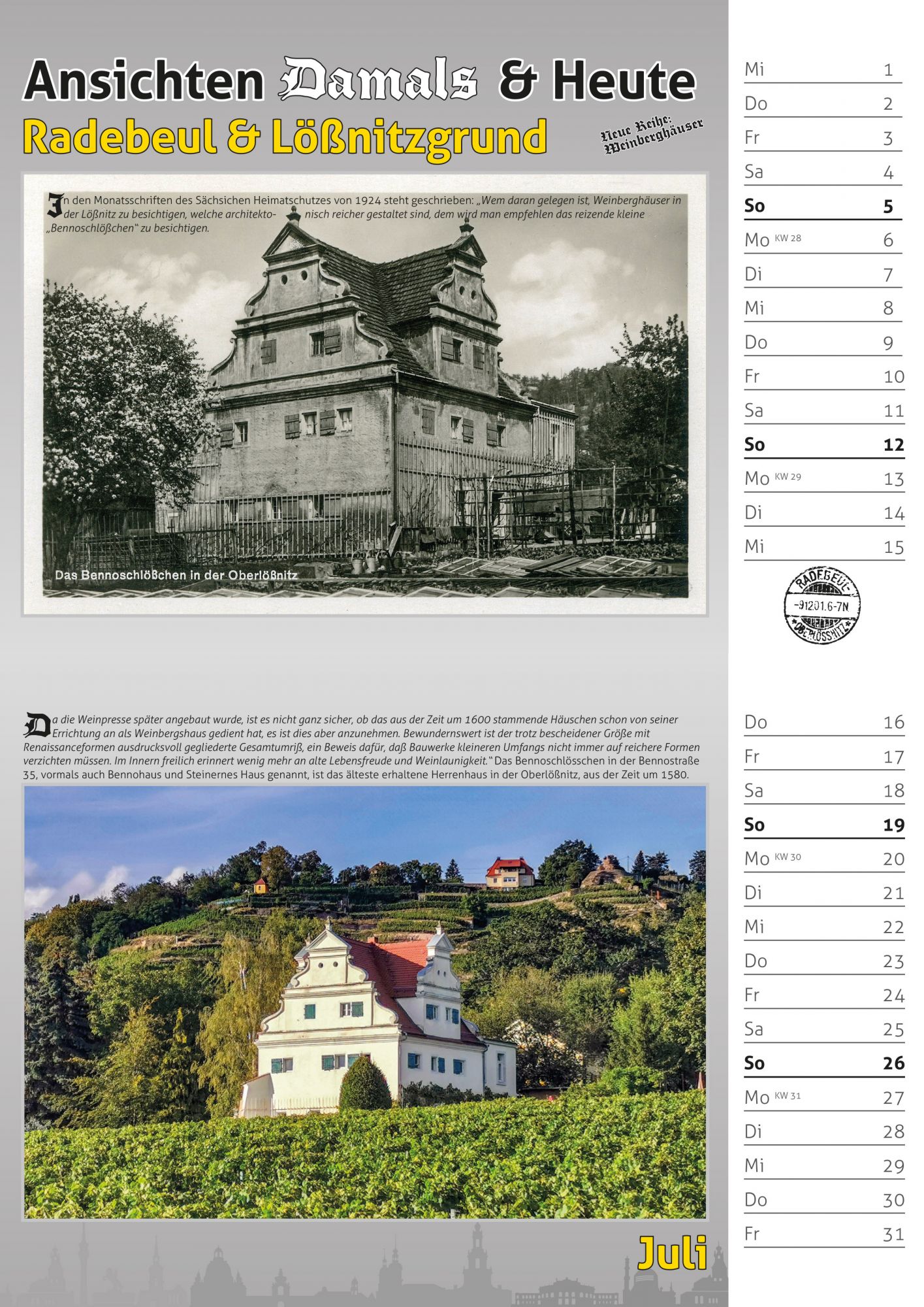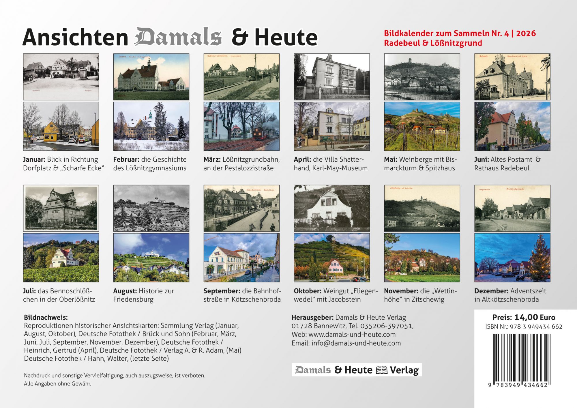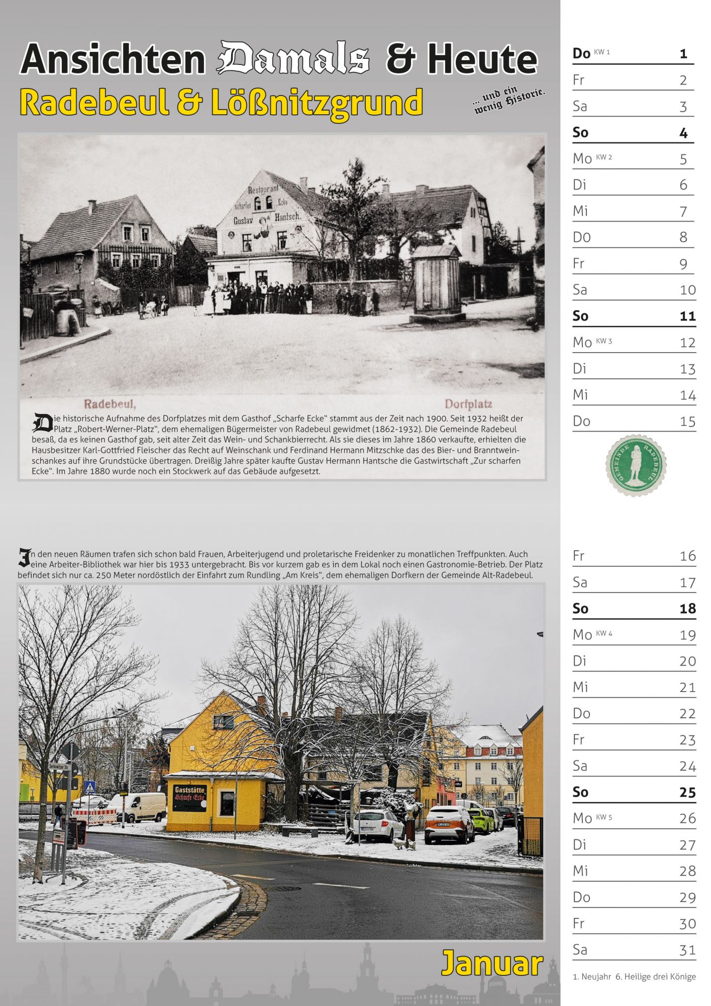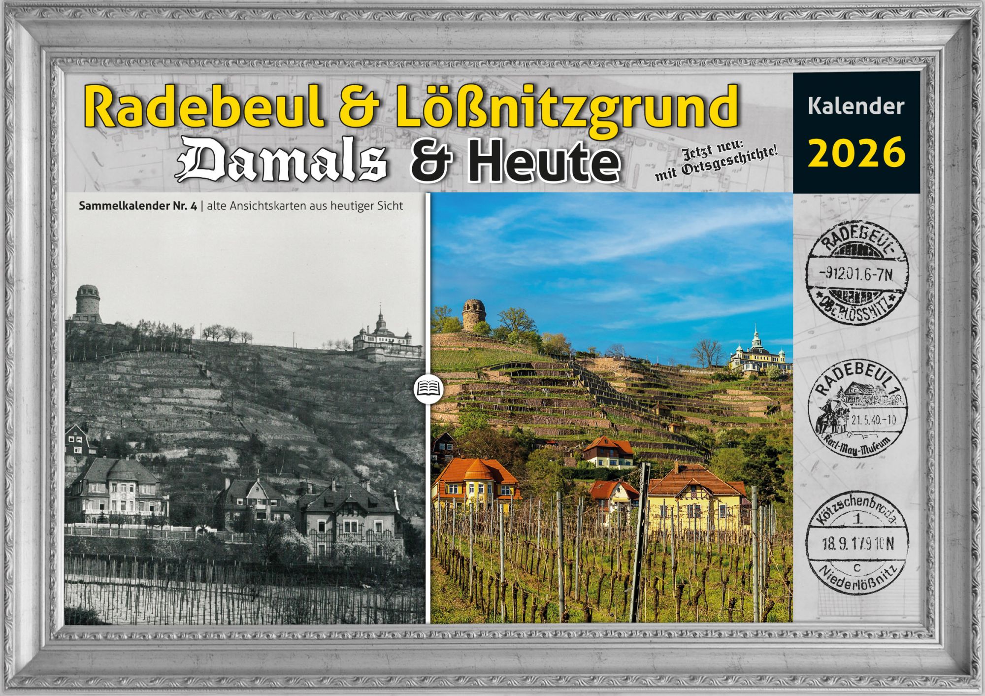 Bildkalender 2026 – Motive vom historischen Radebeul und dazu die heutige Sicht.